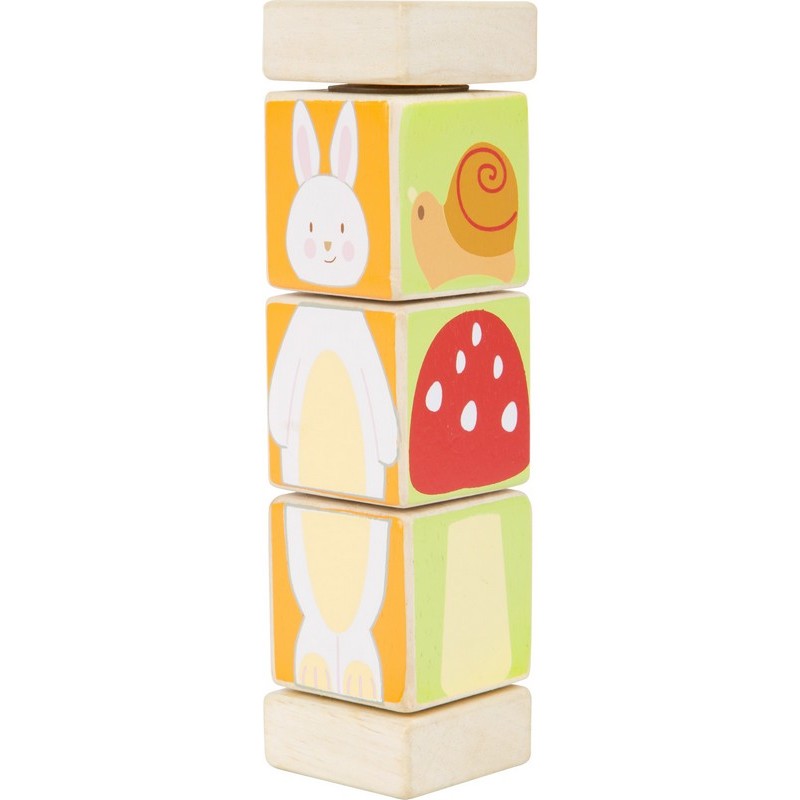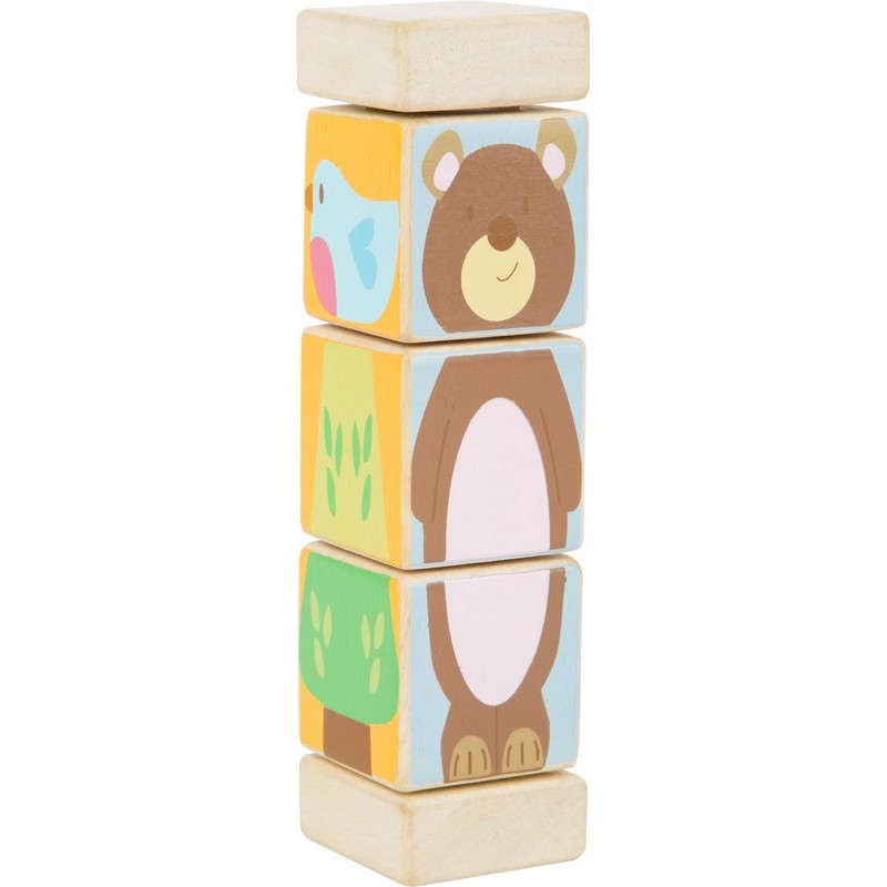 Regardez, un lapin-ours ! Avec cette tour en bois les différents motifs peuvent être combinés de façons toujours nouvelles.