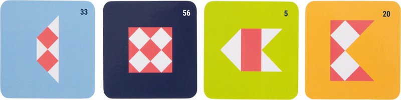 Il sert à l’étude intensive des figures symétriques et à l’exploration des formes géométriques. Le but de ce Tangram avec miroirs adapté aux enfants est de placer les quatre plaquettes de formes en bois solide devant le grand miroir incassable. Il faut que la figure posée forme, avec la figure dans le miroir, l’image sur la carte modèle correspondante.