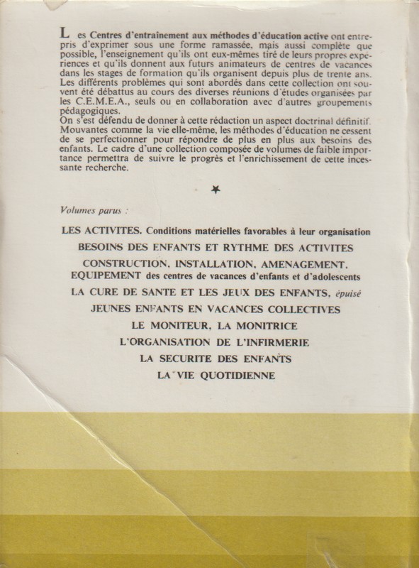 LIVRE – REPERES – LOISIRS – Sécurité des enfants en Colonie de vacances – CEMEA