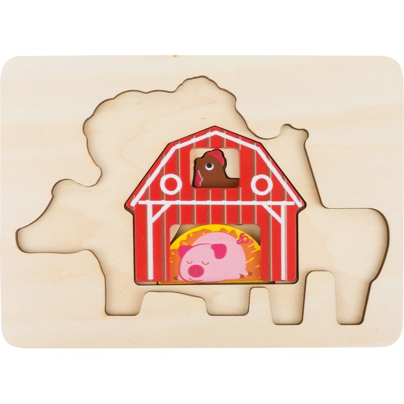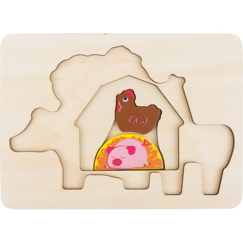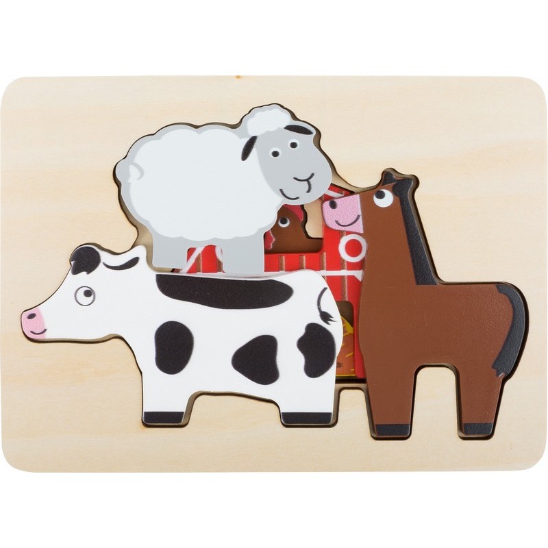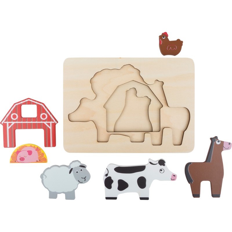 Ce puzzle en bois robuste représente les différents animaux de la ferme et forme la motricité de l’enfant.
